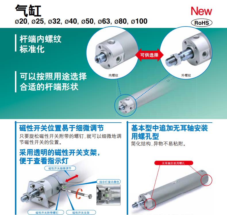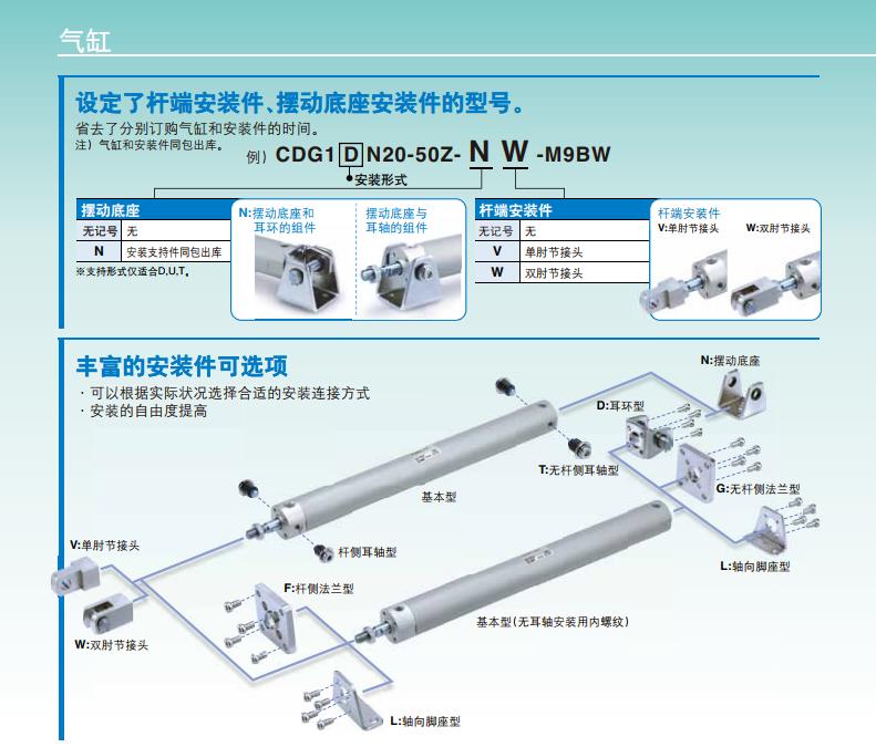 ・追加了带杆端金属安装件、摆动金属安装件的型号(不必再另行配备)。