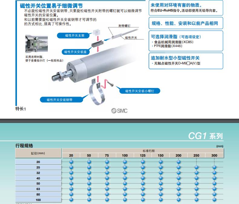 | 低摩擦型 | CG1□Q | 单杆双作用 | 20,25,32,40,50,63,80,100 |