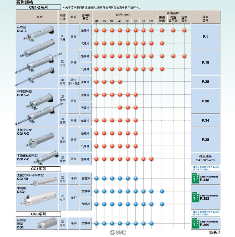 | 标准型 | CG1-Z | 单杆双作用 | 20,25,32,40,50,63,80,100 |
