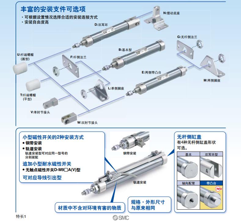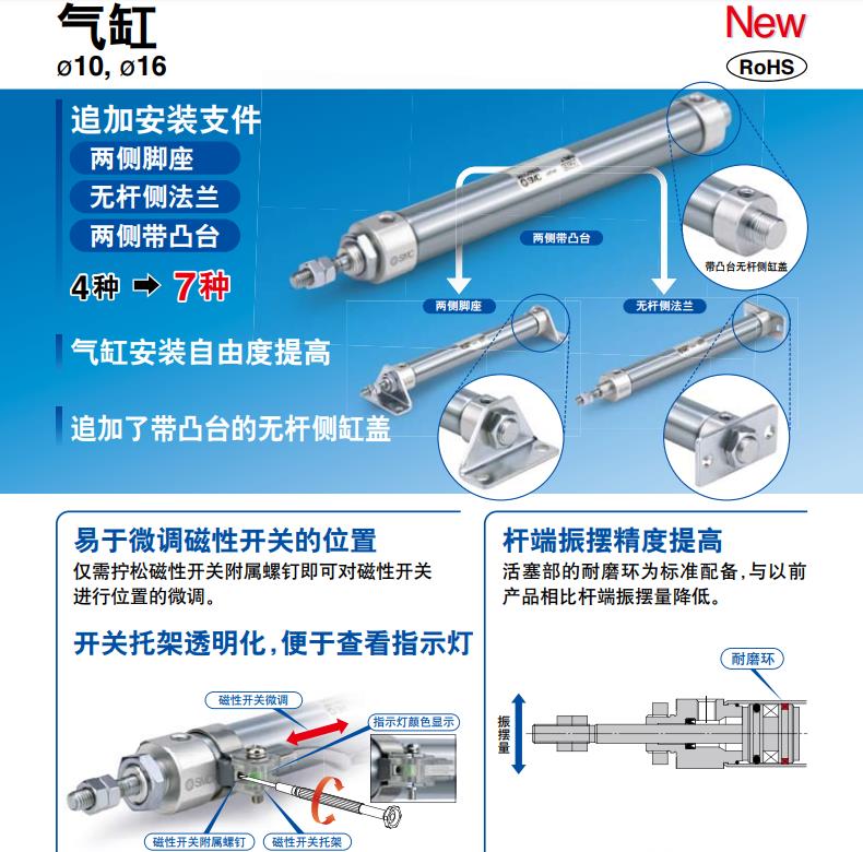 ・追加了带杆端金属安装件、摆动金属安装件的型号(不必再另行配备)