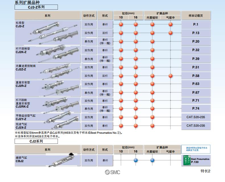 | 标准型 | CJ2-Z | 单作用(伸・缩) | 6,10,16 |