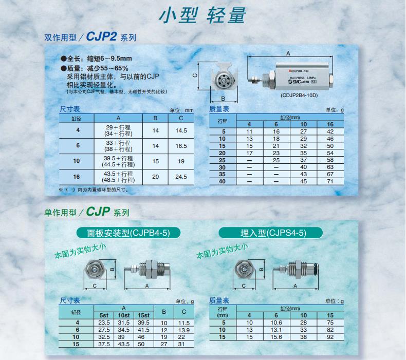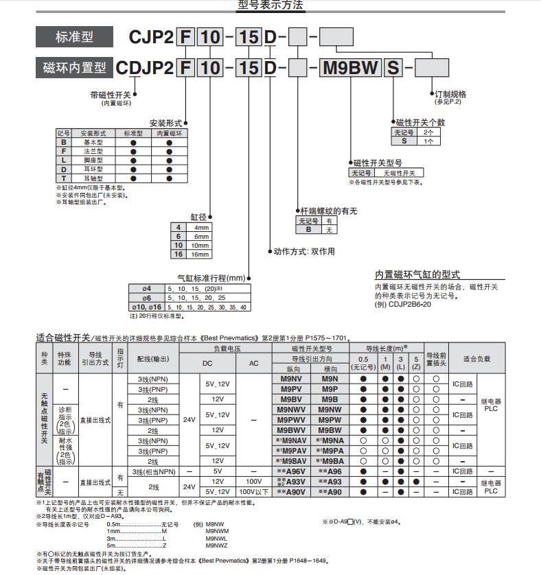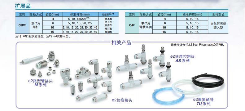 ・缸径ø4-5st也可安装2个磁性开关。・可连接ø2的快换管接头及速度控制阀。・带磁性开关(CDJP2系列:CDJP2)