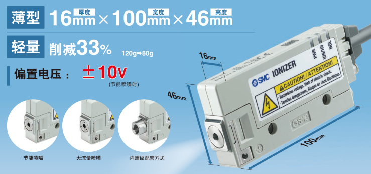 | IZN10E | 电晕放电式 | 节能喷嘴:±10V以内 大流量喷嘴:±15V以内 |