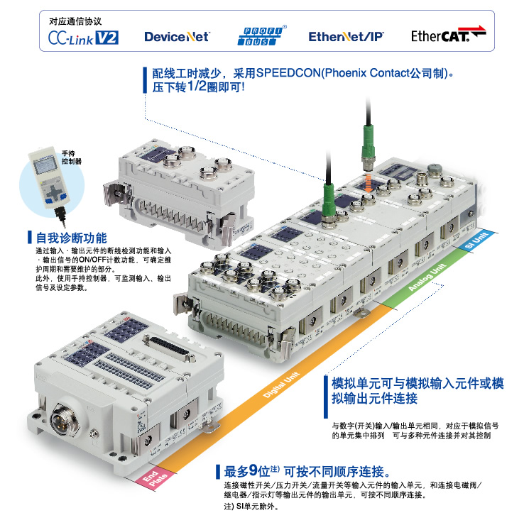 ・小体积、大流通能力・VQC4000可驱动ø160以下的气缸・VQC5000可驱动ø180以下的气缸・支持多种通信协议・省电,消耗功率:0.4W(低功率型)・寿命长:1亿次(在本公司的实验条件下)・防护等级符合IP67